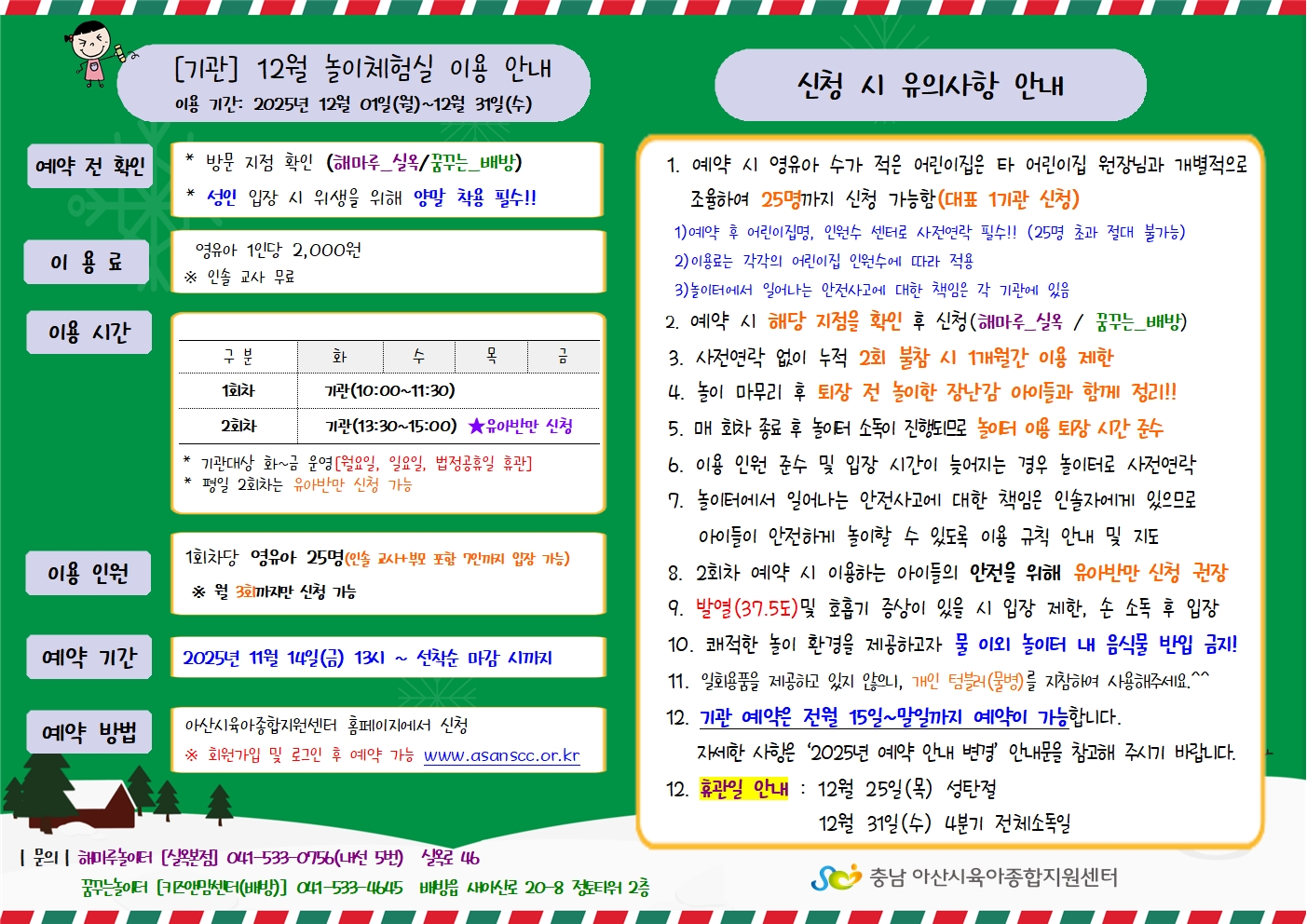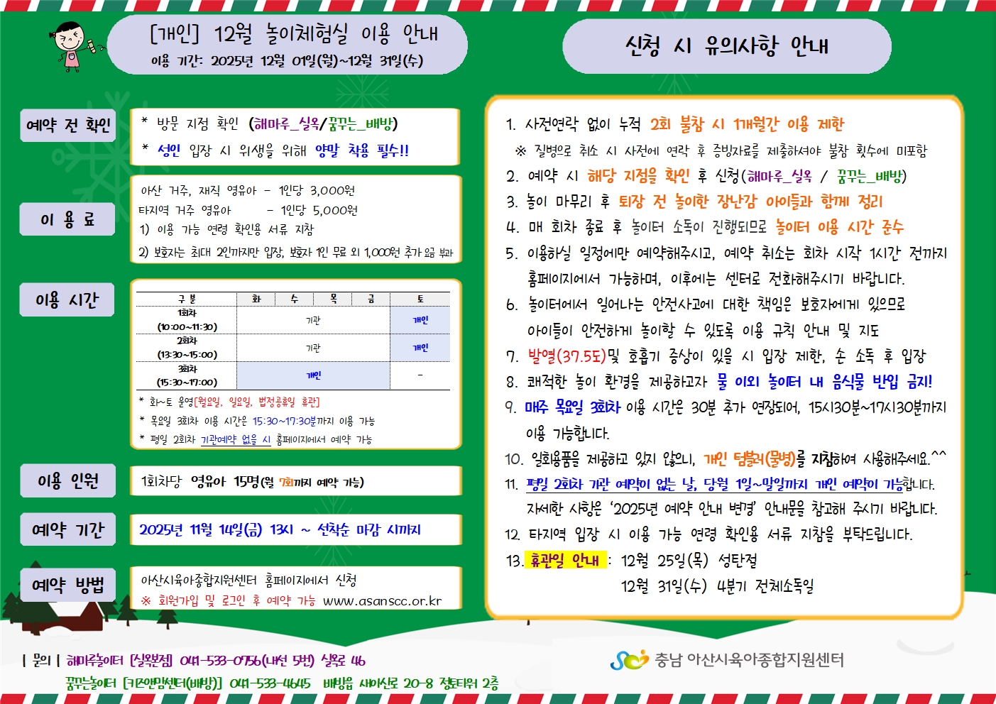 | [³îÀÌüÇè½Ç] 2025³â 12¿ù ³îÀÌüÇè½Ç ÀÌ¿ë ¾È³» 2025-11-07 | Á¶È¸¼ö : 83 | |||||