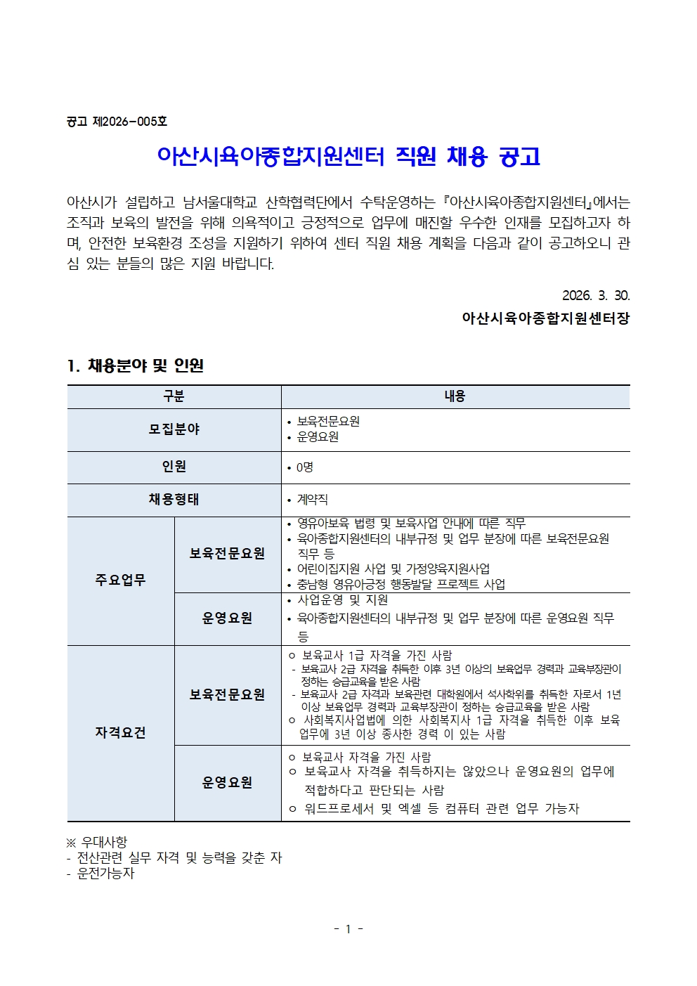 2026-061- 2026-005¾Æ»ê½ÃÀ°¾ÆÁ¾ÇÕÁö¿ø¼¾ÅÍ Á÷¿ø ä¿ë °ø°í¹®(2026.03.30.).pdf