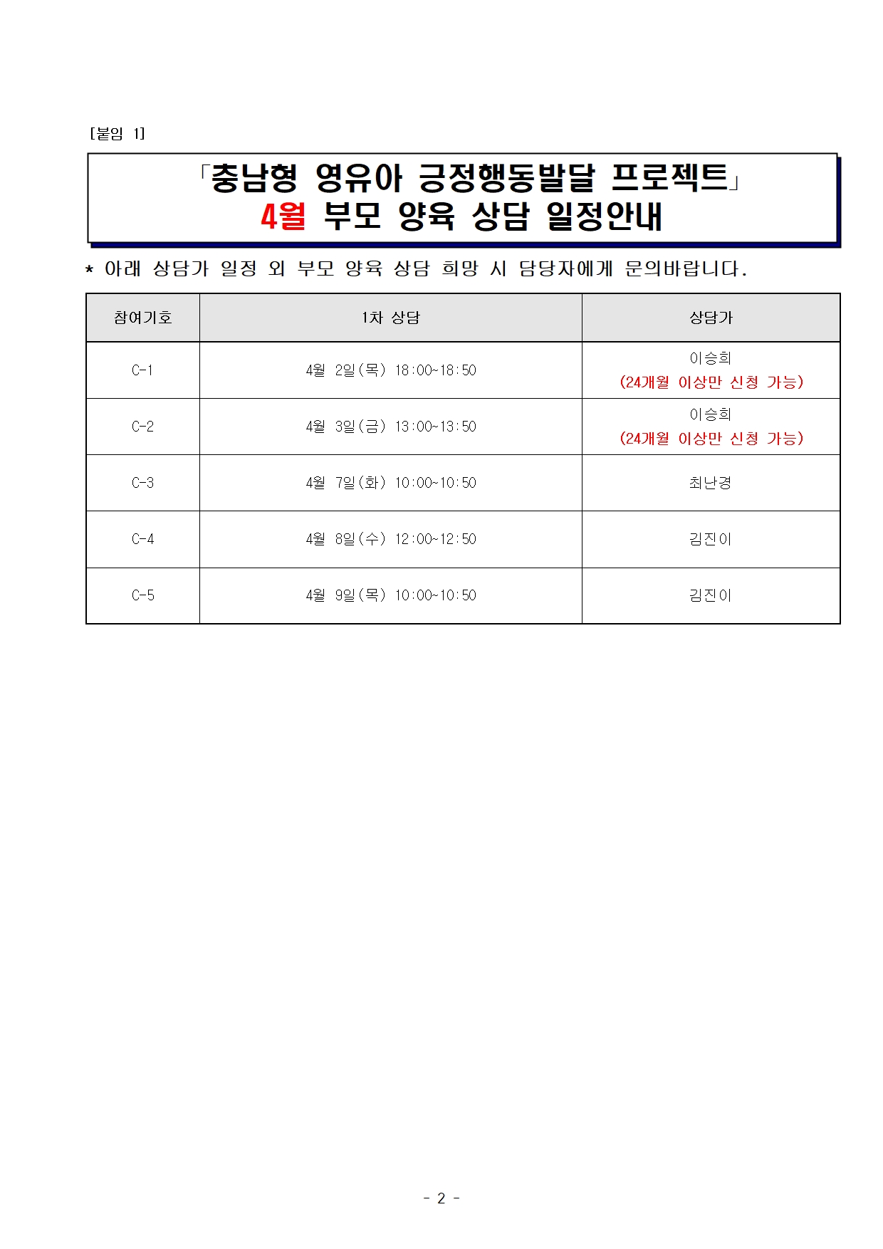 [Ãæ³²Çü ¿µÀ¯¾Æ ±àÁ¤Çൿ¹ß´Þ ÇÁ·ÎÁ§Æ®] 4¿ù ºÎ¸ð»ó´ã ¾È³»