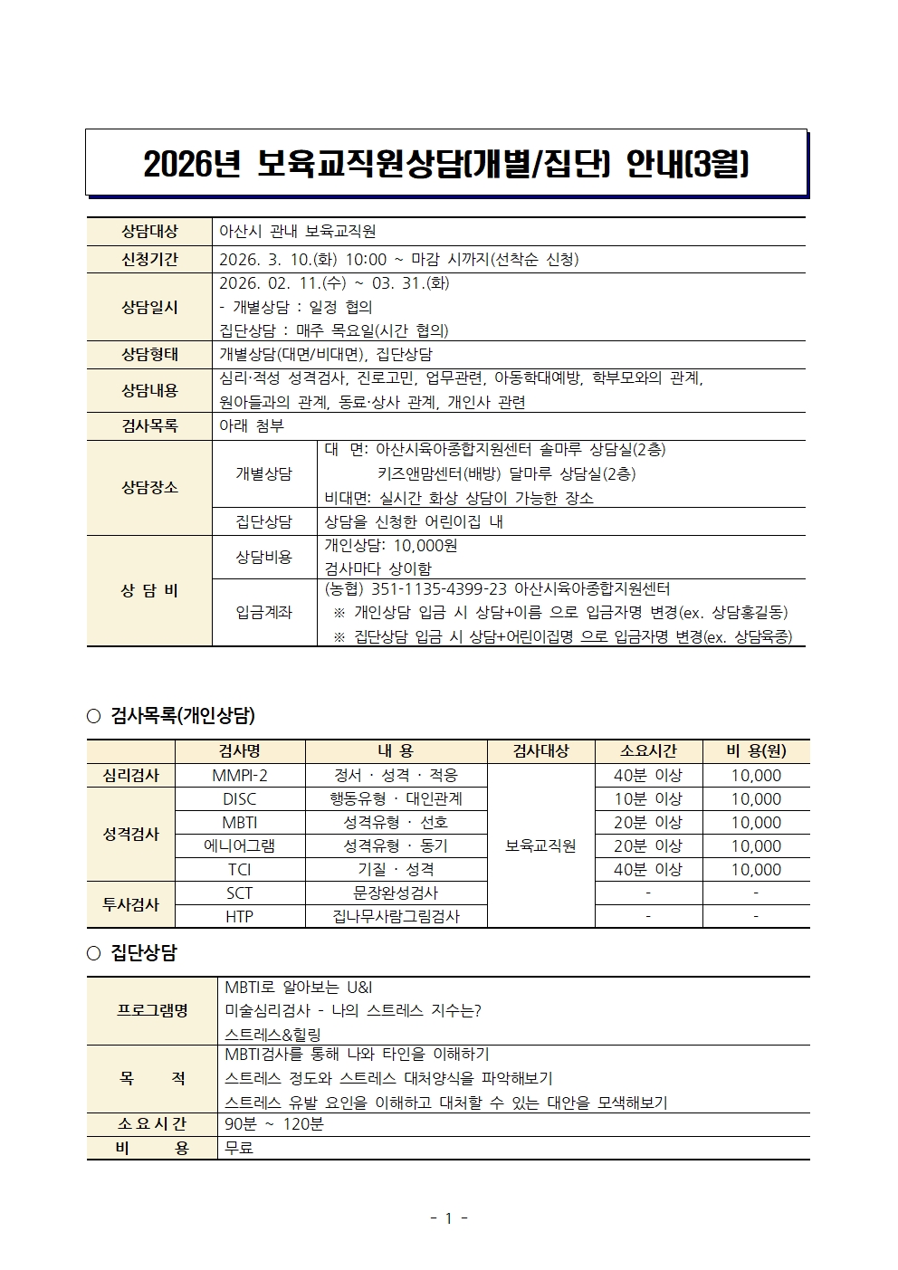 ¾È³çÇϼ¼¿ä. 2026³â 3¿ù º¸À°±³Á÷¿ø »ó´ã(°³º°/Áý´Ü) ¾È³»ÀÔ´Ï´Ù.