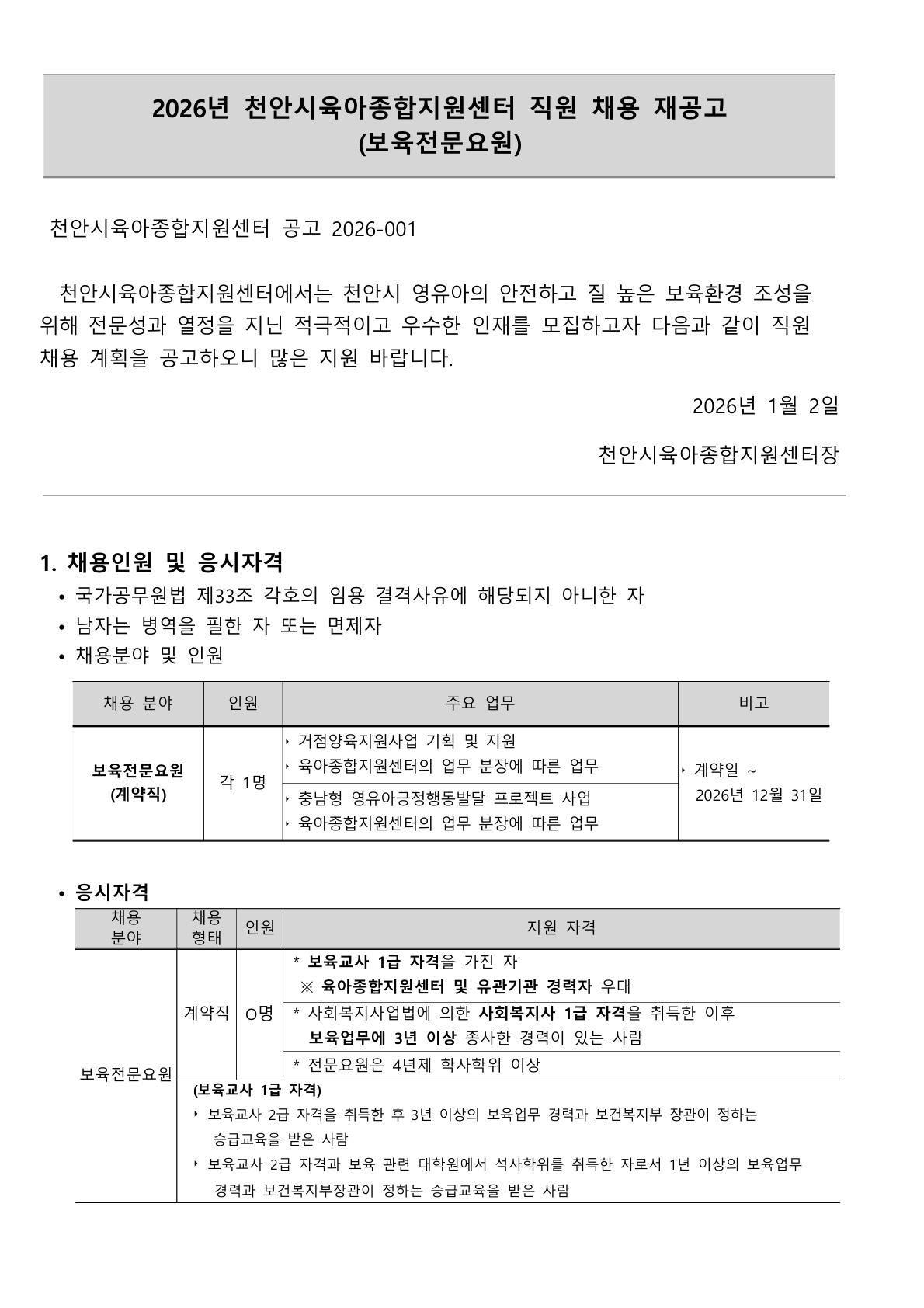 õ¾È½ÃÀ°¾ÆÁ¾ÇÕÁö¿ø¼¾ÅÍ Á÷¿ø ä¿ë Àç°ø°í