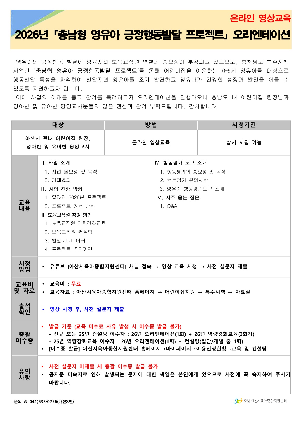 2026³â Ãæ³²Çü ¿µÀ¯¾Æ ±àÁ¤Çൿ¹ß´Þ ÇÁ·ÎÁ§Æ® º¸À°±³Á÷¿ø ¿À¸®¿£Å×ÀÌ¼Ç ¾È³»µå¸³´Ï´Ù.