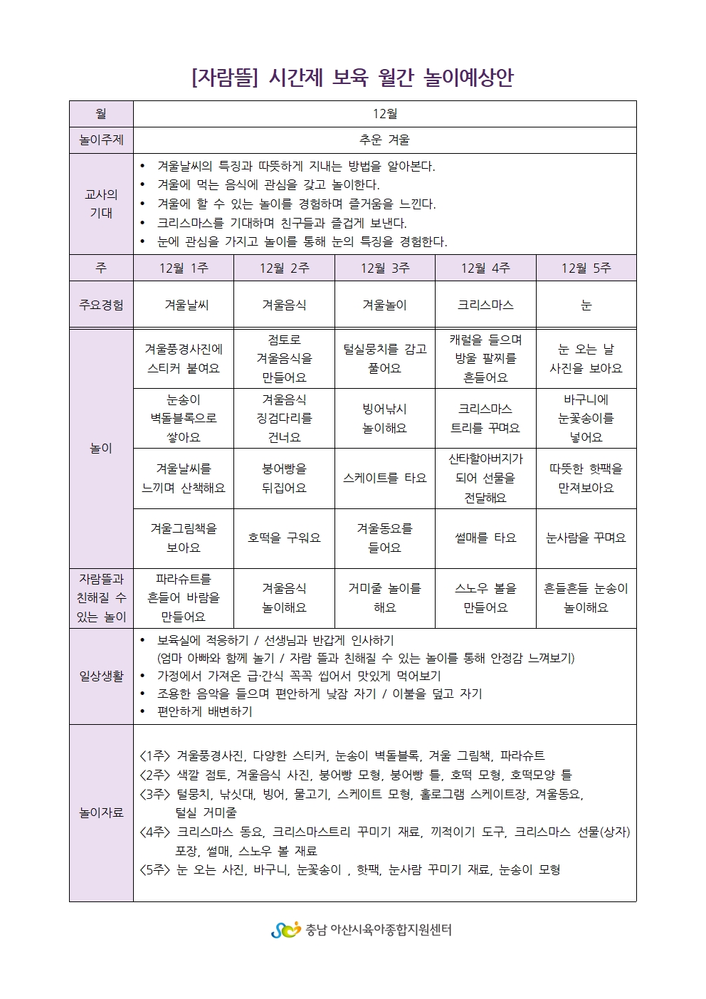 [ÀÚ¶÷¶ã ½Ã°£Á¦º¸À°½Ç] 12¿ù ³îÀÌ¿¹»ó¾È
