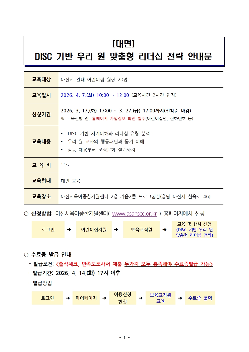 | ±âŸ»çÇ× | *º» ±³À°Àº ´ë¸é ±³À°ÀÔ´Ï´Ù. *±³À° ½ÃÀÛ ÈÄ, 20ºÐÀÌ °æ°úÇϰųª Á¾·á Àü ÅðÀå½Ã Ãâ¼®ÀÎÁ¤ÀÌ ºÒ°¡ÇÕ´Ï´Ù. |