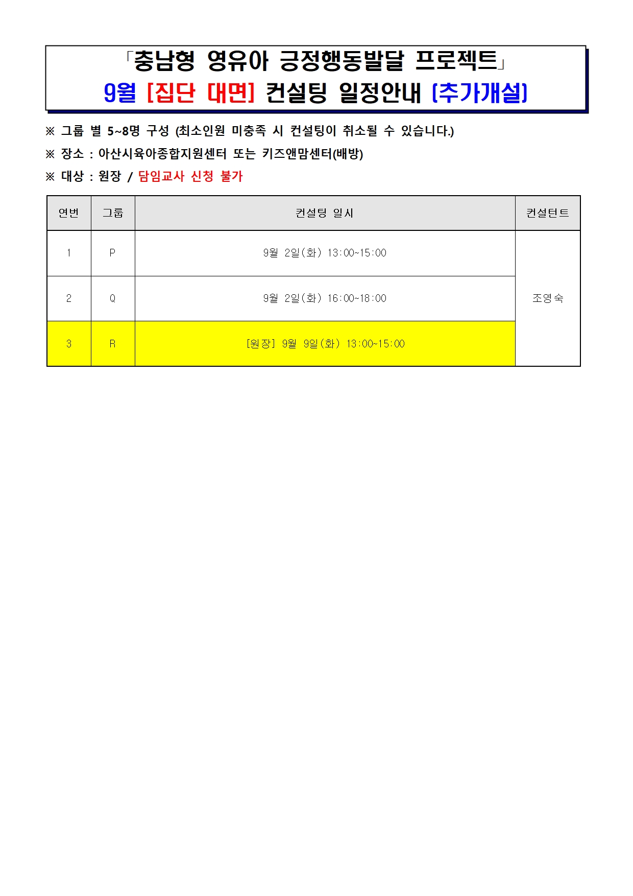 [¿øÀå Áý´Ü R] Ãæ³²Çü ¿µÀ¯¾Æ ±àÁ¤Çൿ¹ß´Þ ÇÁ·ÎÁ§Æ® º¸À°±³Á÷¿ø ÄÁ¼³ÆÃ | |||