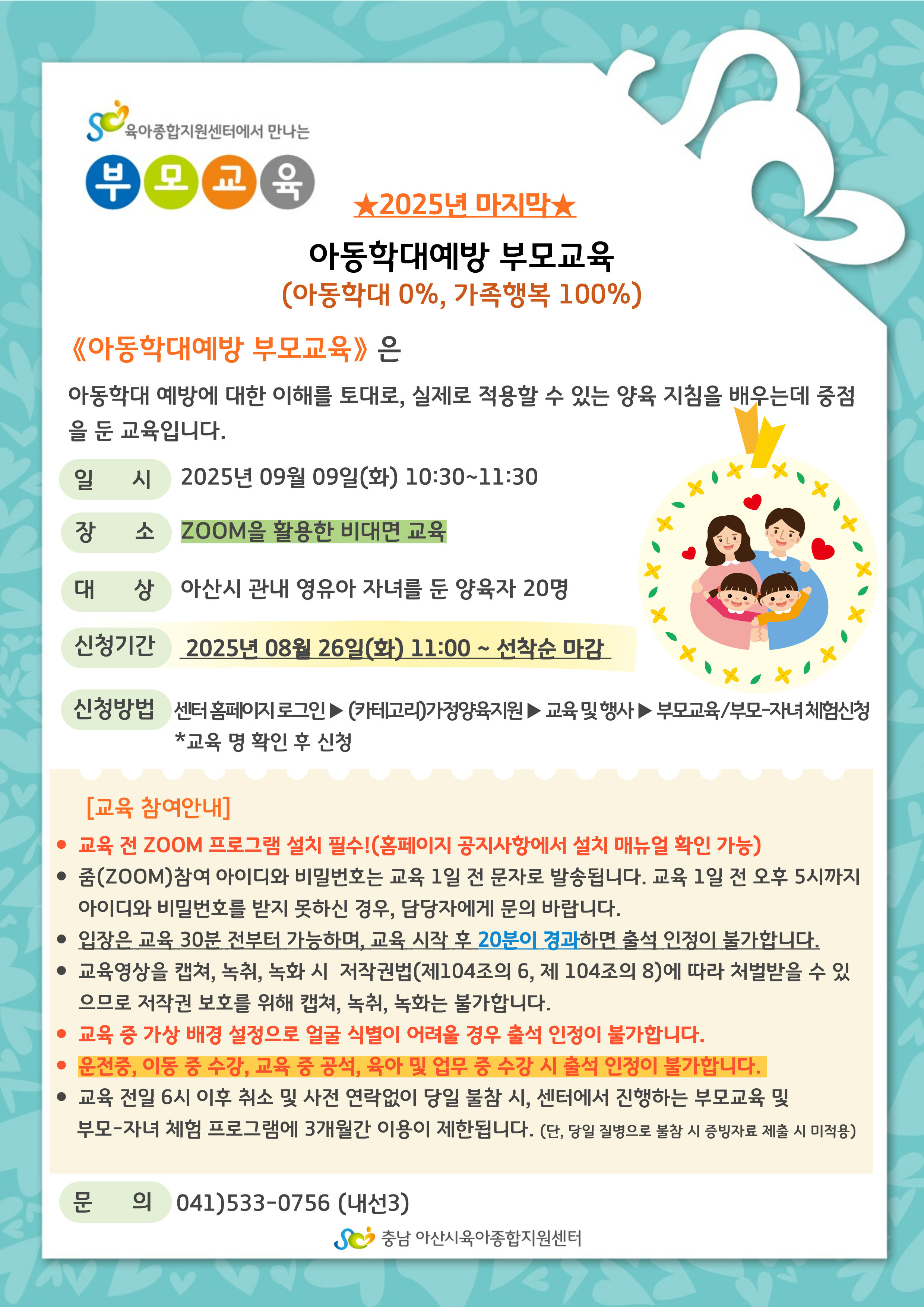 (ºñ´ë¸é) ¾Æµ¿Çд뿹¹æ ºÎ¸ð±³À°(¾Æµ¿Çдë 0%, °¡Á·Çູ 100%) | |||