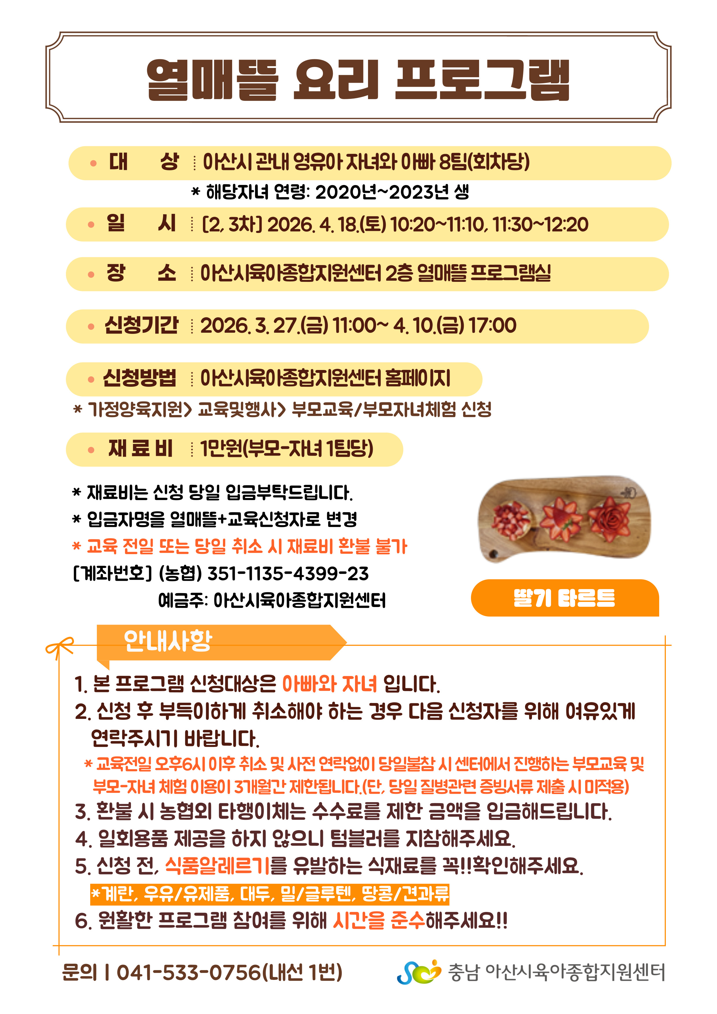 | ±âŸ»çÇ× | *ÀÚ³à-¾Æºü 1ÆÀÀ¸·Î Âü¿©(¿µÀ¯¾Æ1Àο¡ º¸È£ÀÚ 1¸í, ¿µÀ¯¾Æ 2¸í¿¡ º¸È£ÀÚ1¸í °¡´É) *½Åû Àü ¾Ë·¹¸£±â ¼ººÐÇ¥¸¦ ²À!! È®ÀÎÇØÁÖ¼¼¿ä *¿øÈ°ÇÑ ÇÁ·Î±×·¥ Âü¿©¸¦ À§ÇØ ½Ã°£À» ÁؼöÇØÁÖ¼¼¿ä *±³À° ÀüÀÏ ¹× ´çÀÏ Ãë¼Ò ½Ã Àç·áºñ ȯºÒÀÌ ºÒ°¡ÇÕ´Ï´Ù. *½ÅûÀÚ¿Í Âü¼®ÀÚ°¡ »óÀÌÇÒ °æ¿ì ¼¾ÅÍ·Î ¿¬¶ôÁֽñ⠹ٶø´Ï´Ù. |