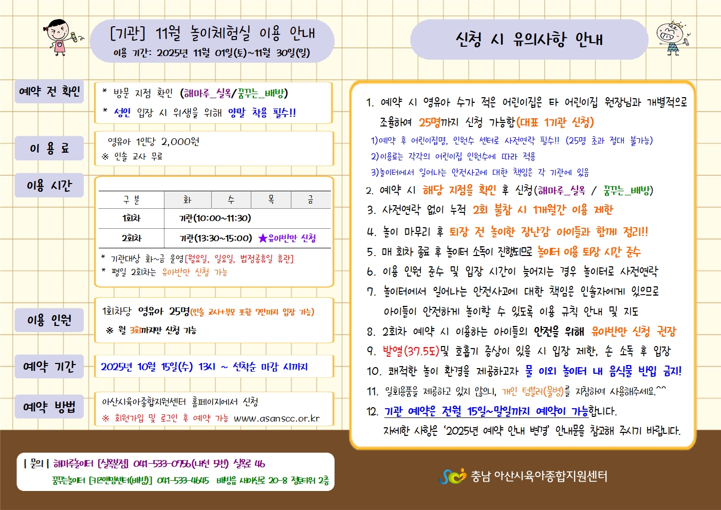 ¾È³çÇϼ¼¿ä. ¾Æ»ê½ÃÀ°¾ÆÁ¾ÇÕÁö¿ø¼¾ÅÍ ³îÀÌüÇè½Ç ´ã´çÀÚÀÔ´Ï´Ù. 2025³â 11¿ù ³îÀÌüÇè½Ç ÀÌ¿ë ¾È³» ÇØµå¸³´Ï´Ù. 10¿ù 15ÀÏ(¼ö) ¿ÀÈÄ 1½ÃºÎÅÍ ¿¹¾àÀÌ °¡´ÉÇÏ¿À´Ï ¸¹Àº °ü½É°ú Âü¿© ºÎʵ右´Ï´Ù.^^ ¿¹¾à(Ŭ¸¯) - [ÇØ¸¶·ç³îÀÌÅÍ] [²Þ²Ù´Â³îÀÌÅÍ]