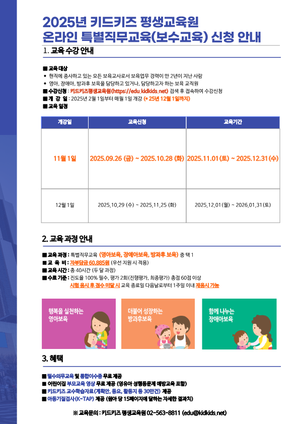 [۵åŰÁî Æò»ý±³À°¿ø] º¸À°±³Á÷¿ø ¿Â¶óÀΠƯº°Á÷¹«±³À° 2025³â 11¿ù °³°¹Ý ¾È³»