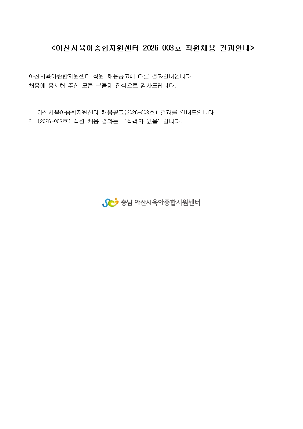 2026-003È£ Á÷¿ø ä¿ë °á°ú ¾È³»