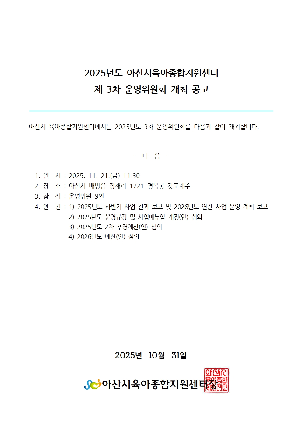 Á¦ 3Â÷ ¿î¿µÀ§¿øÈ¸ °³ÃÖ °ø°í ¾È³»