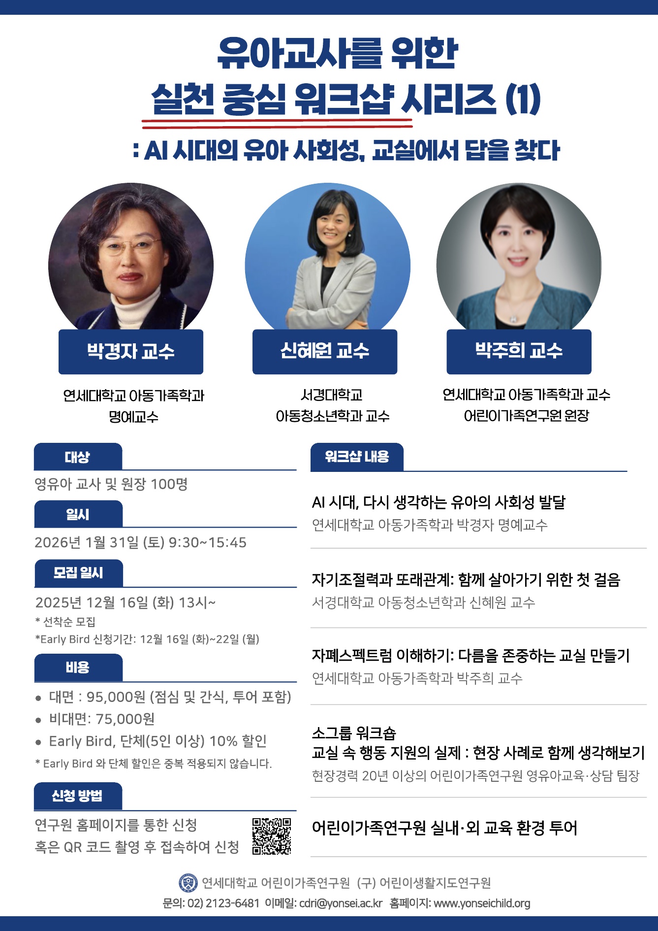 [¿¬¼¼´ëÇб³ ¾î¸°À̰¡Á·¿¬±¸¿ø] À¯¾Æ±³»ç¸¦ À§ÇÑ ½Çõ Á᫐ ¿öÅ©¼¥ ½Ã¸®Áî
