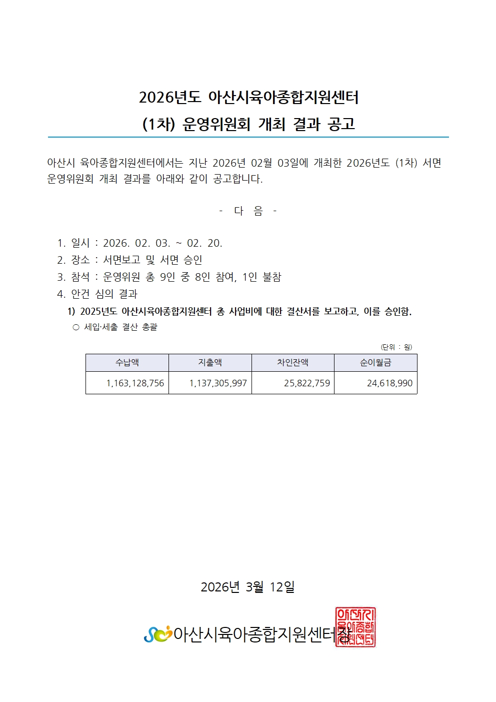 2026³âµµ (1Â÷) ¿î¿µÀ§¿øÈ¸ °³ÃÖ °á°ú °ø°í