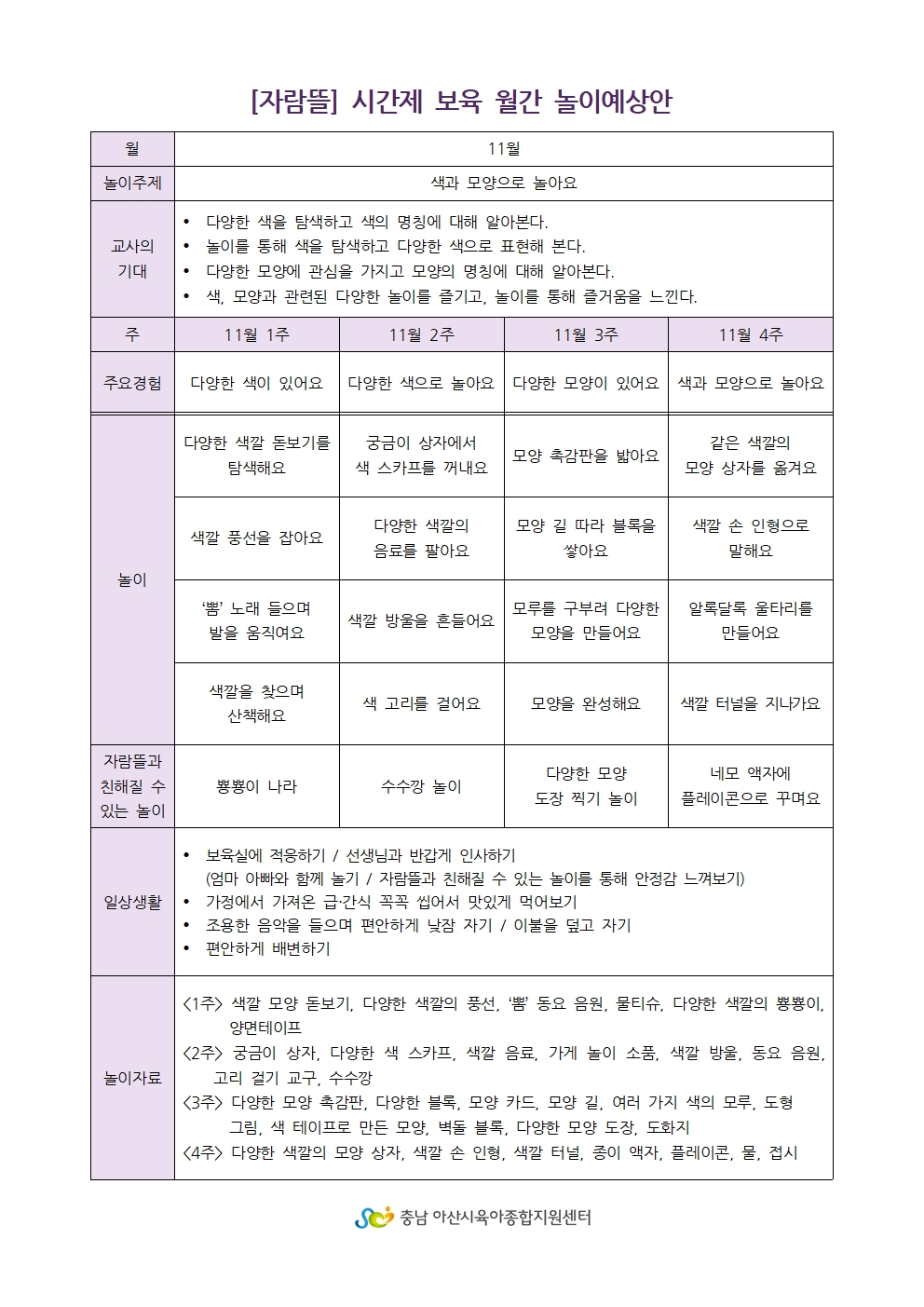 [ÀÚ¶÷¶ã ½Ã°£Á¦º¸À°½Ç] 11¿ù ³îÀÌ¿¹»ó¾È