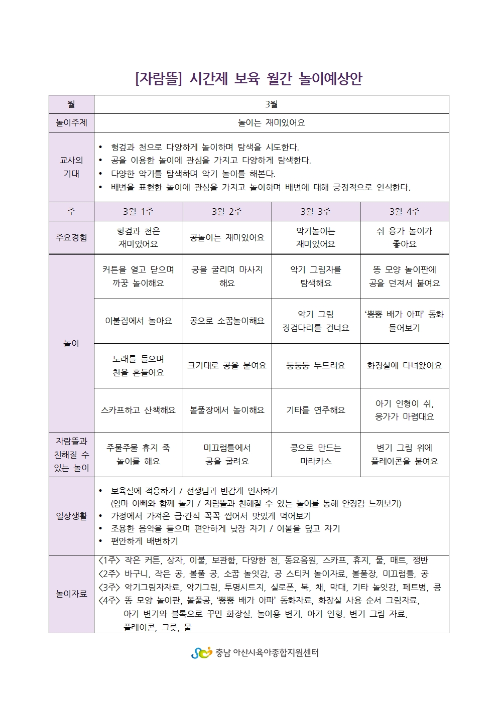 [ÀÚ¶÷¶ã ½Ã°£Á¦º¸À°½Ç] 3¿ù ³îÀÌ¿¹»ó¾È