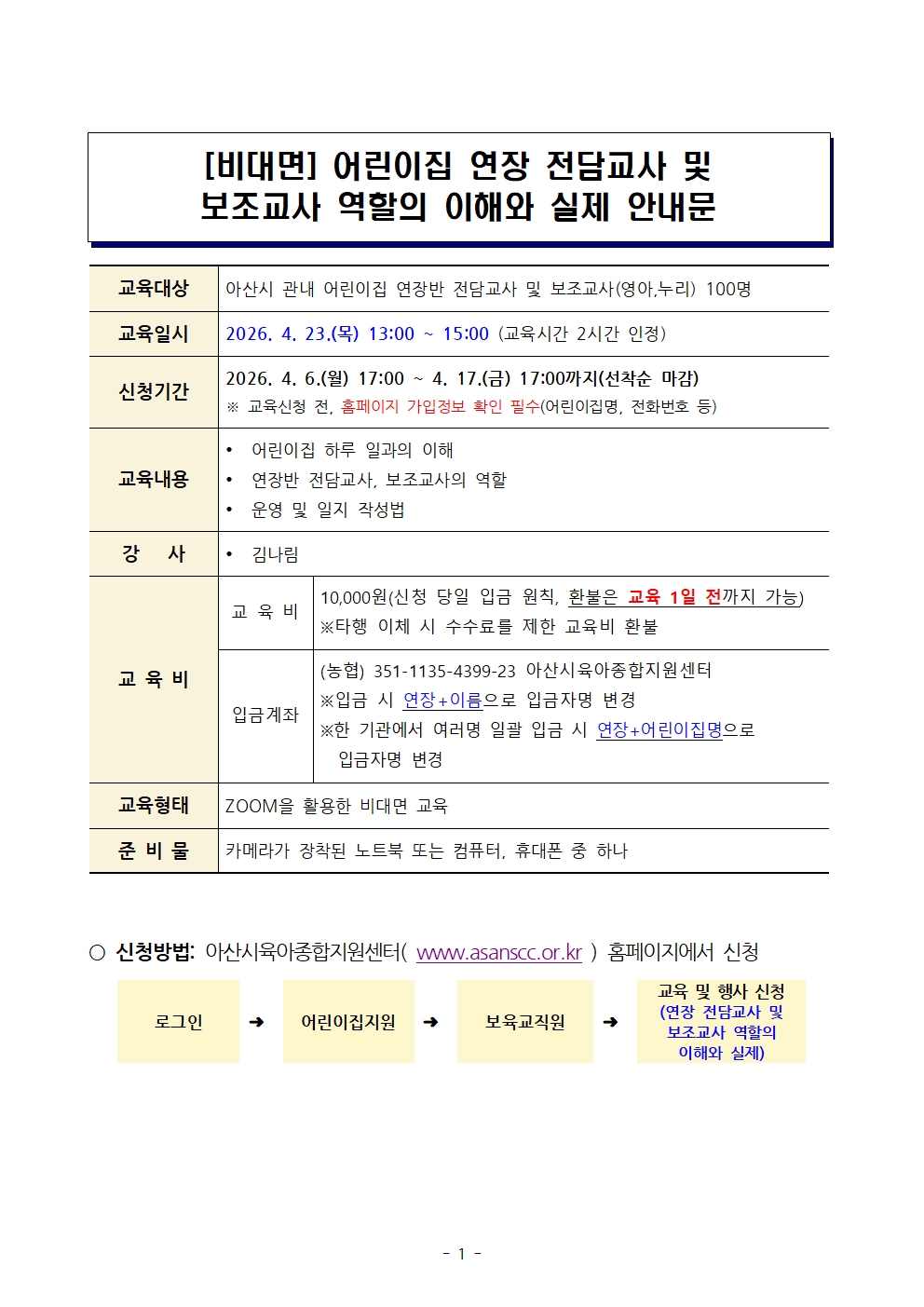 | ±âŸ»çÇ× | *±³À°½ÃÀÛ ÈÄ 20ºÐÀÌ °æ°úÇϸé Ãâ¼®ÀÎÁ¤ ºÒ°¡ *±³À°½Åû Àü ȸ¿ø°¡ÀÔ Á¤º¸ È®ÀÎ(¾î¸°ÀÌÁý¸í/ÀüȹøÈ£) *Ã⼮üũ+¸¸Á·µµÁ¶»ç ȸ½Å µÎ°¡Áö ¸ðµÎ ÃæÁ·µÇ¾î¾ß ¼ö·áÁõ ¹ß±Þ *ÁÜ ÇÁ·Î±×·¥ ±³À° Àü ¼³Ä¡ Çʼö |