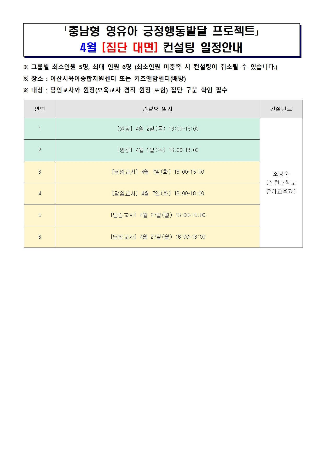 | ±âŸ»çÇ× | *ÄÁ¼³ÆÃ ½Åû ÈÄ ¹ÌÂü¿© ½Ã¿¡µµ ÄÁ¼³ÆÃ ºñ¿ëÀÌ ¼¾ÅÍ¿¡¼ ÁöÃâµÇ¹Ç·Î ¹Ýµå½Ã Âü¿©ÇÏ½Ç º¸À°±³Á÷¿ø¸¸ ½ÅÃ»ÇØ Áֽñ⠹ٶø´Ï´Ù. (ÀÏÁ¤º¯°æ ºÒ°¡) *´çÀÏ »çÀü¿¬¶ô¾øÀÌ ÄÁ¼³ÆÃ ¹ÌÂü¿©½Ã(³ë¼î) ÇØ´ç ¾î¸°ÀÌÁýÀº ¼¾ÅÍ »ç¾÷¿¡ 1°³¿ù µ¿¾È Âü¿©°¡ ºÒ°¡ÇÕ´Ï´Ù. *»çÀü ¿À¸®¿£Å×ÀÌ¼Ç À̼ö ÈÄ QRÄÚµå·Î »çÀü ¼³¹®Áö Á¦ÃâÇÏ°í ½ÅÃ»ÇØÁֽñ⠹ٶø´Ï´Ù. *¹®ÀÚ·Î ¹ß¼ÛµÇ´Â ÄÁ¼³ÆÃ¿ë ¼³¹®Áö¿Í Çൿüũ¸®½ºÆ® ÀÛ¼º ÈÄ ¸ÞÀÏ·Î Á¦Ãâ ÇʼöÀÔ´Ï´Ù. *¸ÞÀÏ: aschildcare@daum.net |