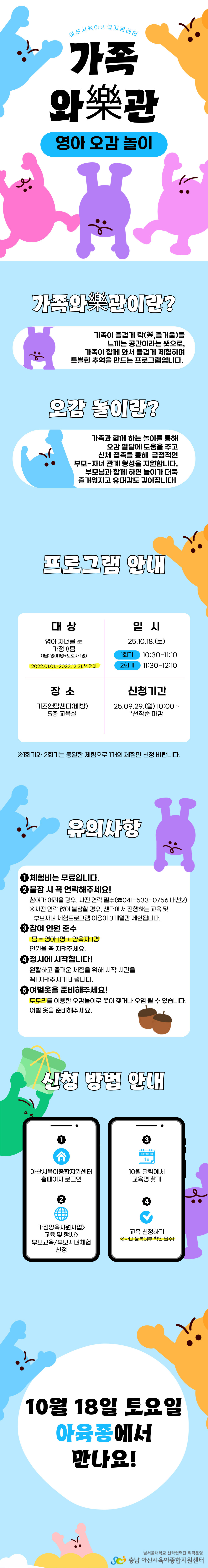 ±âŸ»çÇ× | - 1ȸ±â¿Í 2ȸ±â´Â µ¿ÀÏÇÑ Ã¼ÇèÀ¸·Î 1°³ÀÇ Ã¼Ç踸 ½Åû ¹Ù¶ø´Ï´Ù - ¾Æ»ê½Ã °ü³» °ÅÁÖÀÚ ¶Ç´Â ¾Æ»ê½Ã ¼ÒÀç Á÷Àå ÀçÁ÷ ÁßÀÎ °¡Á¤¸¸ ½Åû °¡´ÉÇÕ´Ï´Ù. - Âü¿© ÀοøÀ» ÁؼöÇØÁÖ¼¼¿ä. (1ÆÀ=¿µ¾Æ1¸í+¾çÀ°ÀÚ1¸í) - üÇè Àü ÀÏ 6½Ã ÀÌÈÄ Ãë¼Ò ¹× »çÀü¿¬¶ô¾øÀÌ ´çÀÏ ºÒÂü½Ã ¼¾ÅÍ¿¡¼ ÁøÇàÇÏ´Â ±³À° ¹× ºÎ¸ðÀÚ³à üÇèÇÁ·Î±×·¥ ÀÌ¿ëÀÌ 3°³¿ù°£ Á¦Çѵ˴ϴÙ. (´çÀÏ º´¿øÁø·á Áõºù¼·ù Á¦Ã⠽à ÆÐ³ÎƼ ¹ÌÀû¿ë) - ¾çÀ°ÀÚ 1Àο¡ ÀÚ³à 2ÀÎ ½Åû °¡´ÉÇÕ´Ï´Ù. - º» üÇèÀº ºÎ¸ð 1ÀÎ ±âÁØ 8ÆÀ Á¢¼öÀÔ´Ï´Ù. ÀÚ³à 2ÀÎ ÀÌ»ó µ¿¹Ý ½Ã ÃÑ Àοø Ãʰú·Î, µÚ´Ê°Ô ½ÅûÇÑ ÆÀÀº Ãë¼ÒµÉ ¼ö ÀÖ½À´Ï´Ù. ¾çÇØ ºÎʵ右´Ï´Ù. |