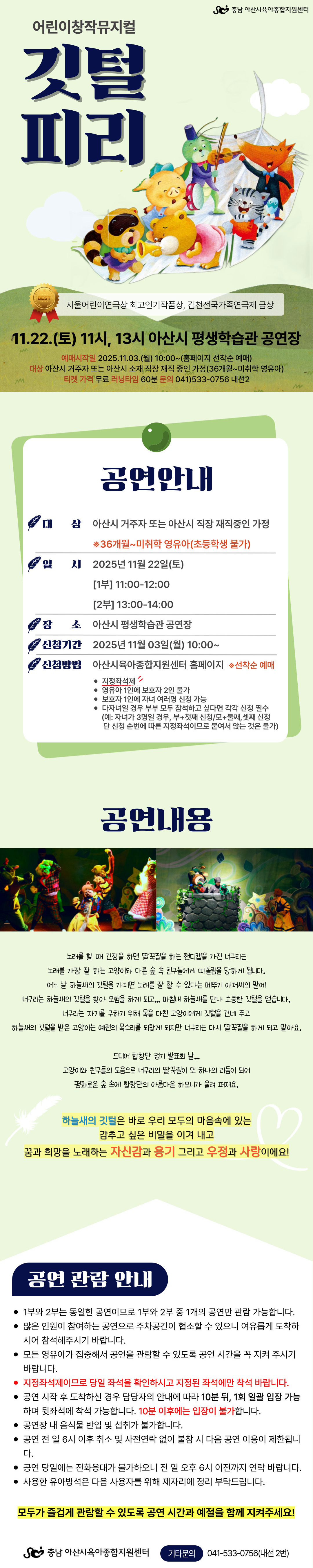 ±âŸ»çÇ× | - ÃëÇÐ Àü ¿µÀ¯¾Æ °¡Á¤¸¸ °ü¶÷ °¡´ÉÇÕ´Ï´Ù. (2019.1.1.~2023.12.31. »ý ¿µÀ¯¾Æ / ÃʵîÇлý °ü¶÷ ºÒ°¡) - °ø¿¬ Àü ÀÏ 6½Ã ÀÌÈÄ Ãë¼Ò ¹× »çÀü¿¬¶ô¾øÀÌ ´çÀÏ ºÒÂü½Ã ´ÙÀ½ °ø¿¬ ÀÌ¿ëÀÌ Á¦Çѵ˴ϴÙ. (´çÀÏ º´¿øÁø·á Áõºù¼·ù Á¦Ã⠽à ÆÐ³ÎƼ ¹ÌÀû¿ë) -º» °ø¿¬Àº ÁöÁ¤Á¼®Á¦·Î ¿î¿µµÇ°í ÀÖ½À´Ï´Ù. Àå¾Ö ¿µÀ¯¾Æ¸¦ µ¿¹ÝÇϽô ¾çÀ°Àںв²¼ Æí¾ÈÇÏ°Ô °ü¶÷ÇÏ½Ç ¼ö ÀÖµµ·Ï Á¼® ¹èÁ¤À» À§ÇØ °ø¿¬ ÀÏÁÖÀÏ Àü±îÁö »çÀü ¹®ÀÇ ºÎʵ右´Ï´Ù. ÀÛÀº ¿äûµµ ¾ðÁ¦µç ÆíÇÏ°Ô ¸»¾¸ÇØ ÁÖ¼¼¿ä. |